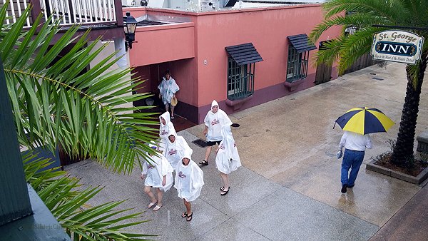 A break in the rain came about 12:30-1:00 p.m. so we grabbed an umbrella and ventured out on our own. We caught the end of the Deaf Department students from FSDB as they were concluding their dance performance in the Plaza Market. At this hour entertainment is moving ahead as scheduled. Musical performances were underway in the Gazebo in the Plaza and on Hypolita Street as we made it back to file this report.