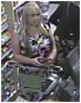Kevin Kelshaw told local reporters that among the items purchased were gift cards totaling $250. The surveillance video images were taken of the blonde-haired woman who used the victim’s check card information to make the purchases.